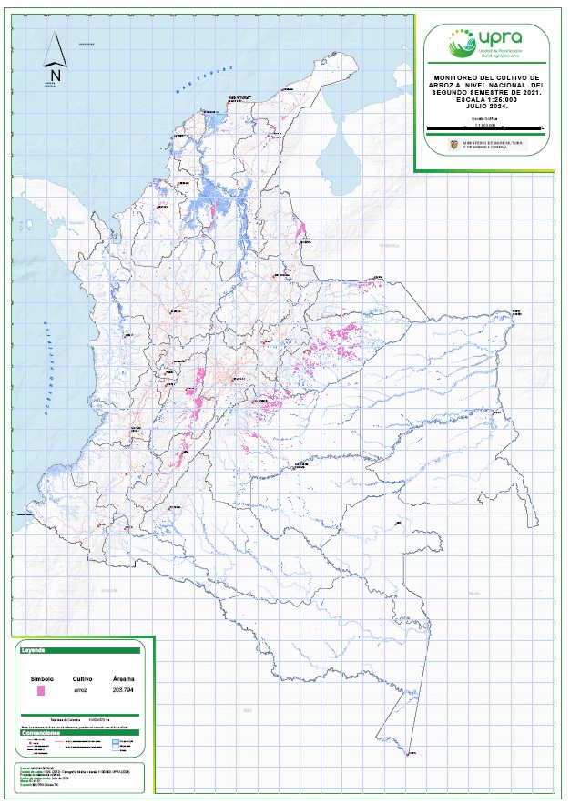 Unidad de Planificación Rural Agropecuaria (UPRA). (2024). Monitoreo del cultivo de arroz a nivel nacional para el periodo 2021-2023, escala 1:25.000