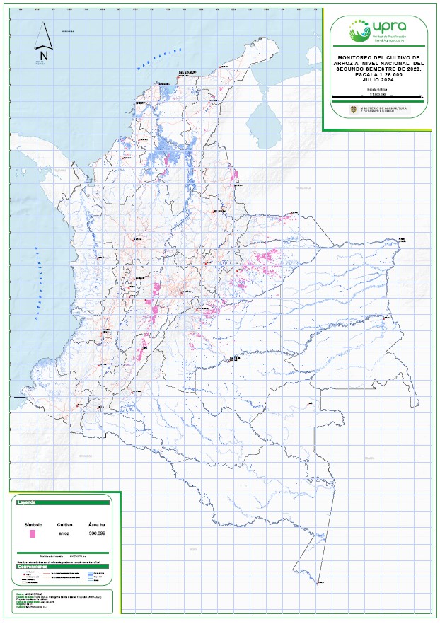 Unidad de Planificación Rural Agropecuaria (UPRA). (2024). Monitoreo del cultivo de arroz a nivel nacional para el periodo 2021-2023, escala 1:25.000.