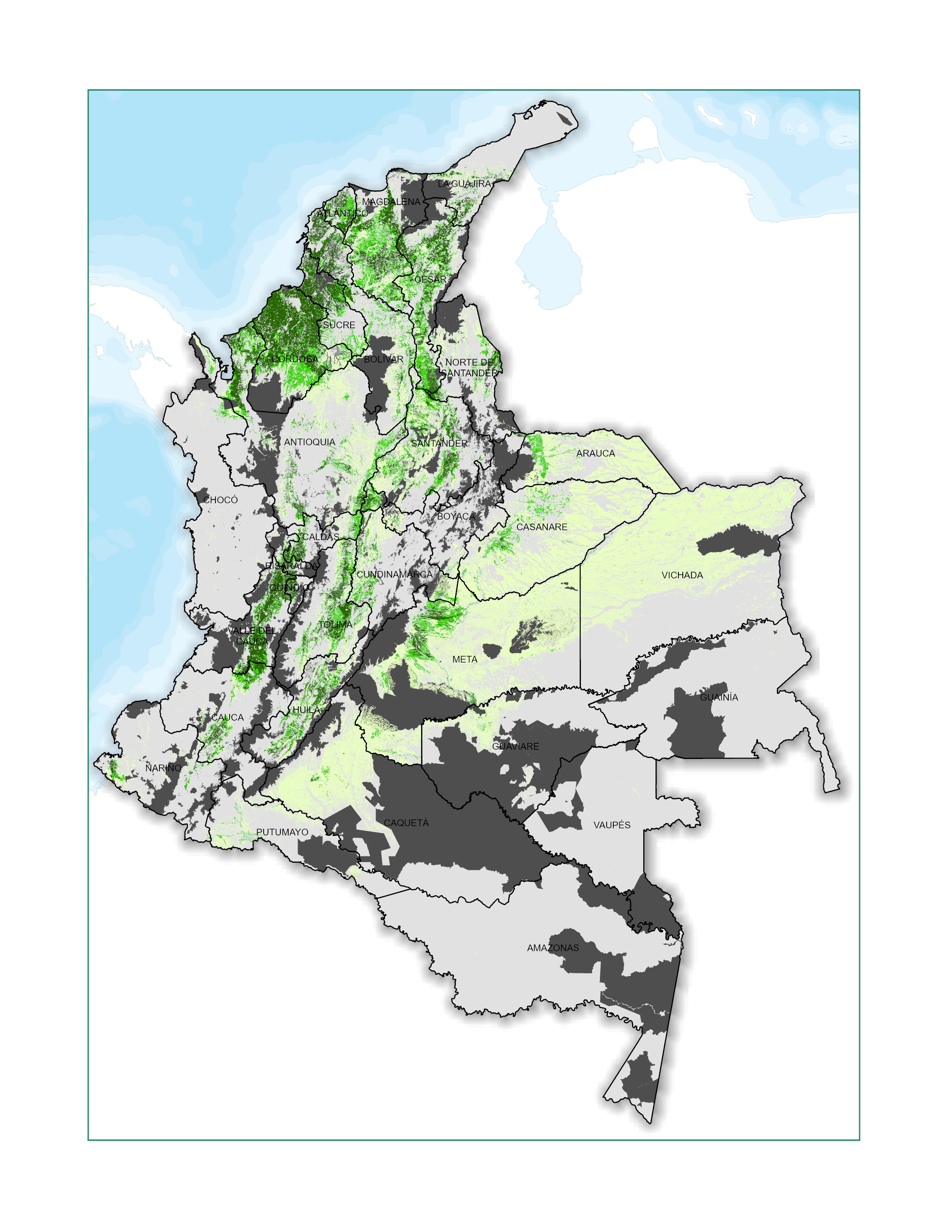 Instituto de Hidrología, Meteorología y Estudios Ambientales (Ideam). (2019). Mapa de bosque no bosque Colombia (área continental). Escala fina Landsat. 2010, V5.